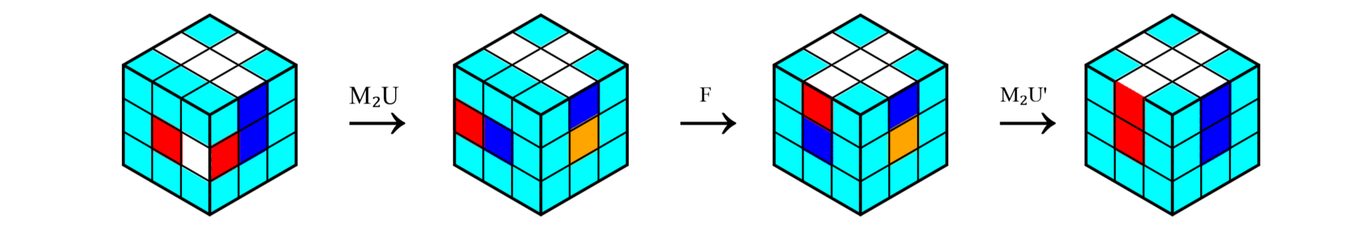 使用公式1-12可以将某一阶段变换到另一阶段,但是如果不调整顶面位置,可能会进入循环无法到达最终的十字阶段。